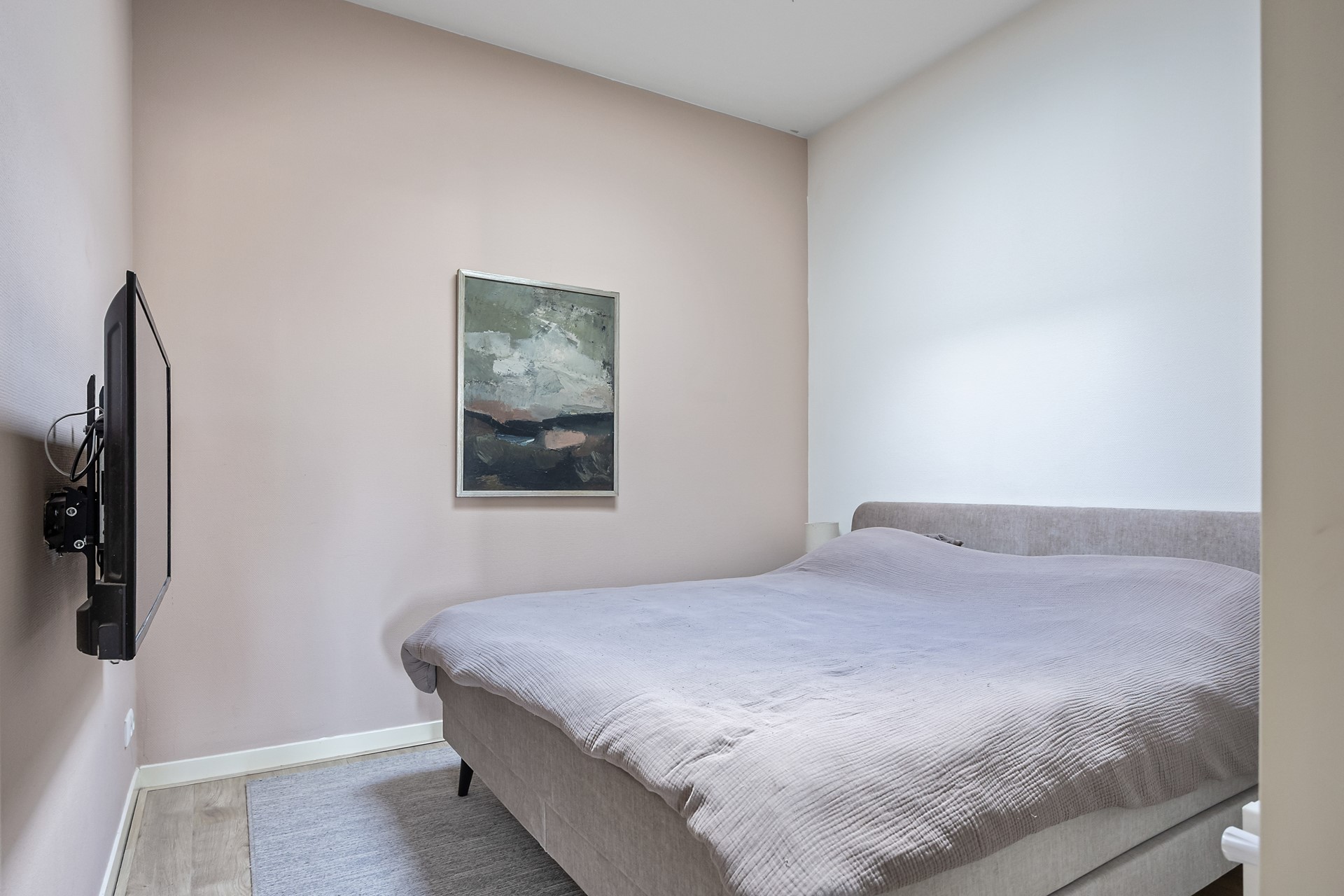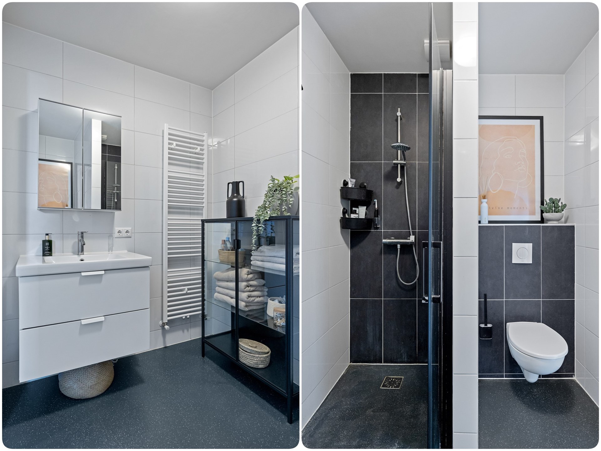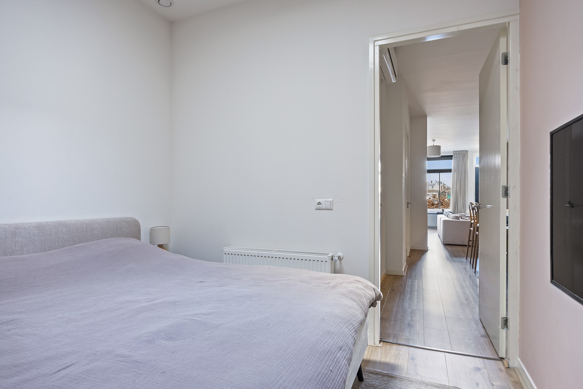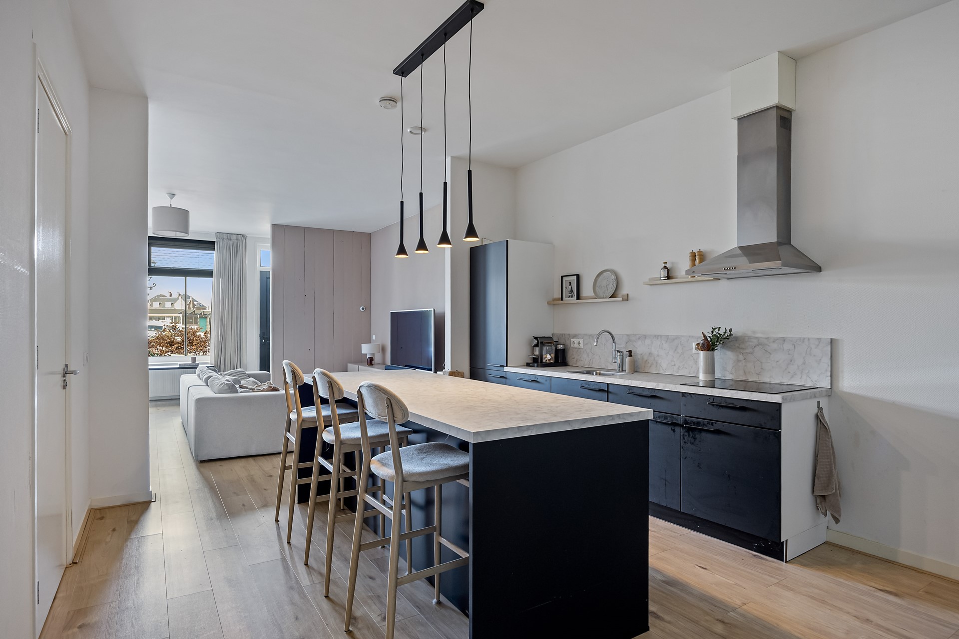 Entree, hal met meterkast, garderobe en cv-ruimte, woonkamer, open keuken met inductie kookplaat, afzuigkap, koelkast, vrieskast, vaatwasser en oven, witgoedruimte met inloopkast, badkamer met inloopdouche, wastafel met meubel, toilet, sierradiator, twee slaapkamers.